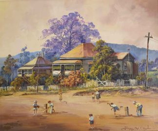 Born in Ipswich, Queensland, D’Arcy Doyle was a 20th-century Australian painter known for his nostalgic depictions of his home country and renowned for his ability to capture light and movement in his depictions of life and Queensland landscapes. It was his childhood home at 39 Darling Street together with the residents of the street and the surrounding environment (particularly the jacaranda trees) which were later to figure prominently in his paintings.