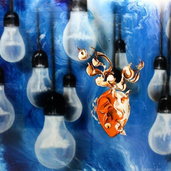 Full of colour, texture and a variety of medium, Grayson’s exuberant and youthful perception is balanced by a depth of knowledge, technique and a proficiency far beyond his years. Although instantly recognisable for the vibrant colour pallet in his funky fish series, his breadth of talent is remarkable. Using a variety of medium he creates exquisite transparent images of 1950's starlets and stunning women. Butterflies, mysterious masquerades and artfully placed feathers draw the viewer into their private worlds