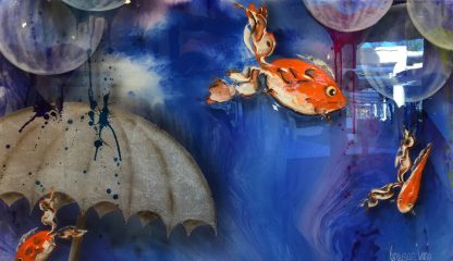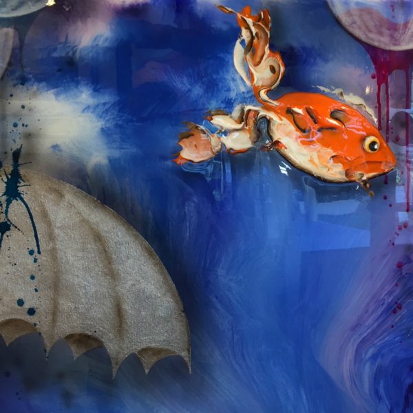Full of colour, texture and a variety of medium, Grayson’s exuberant and youthful perception is balanced by a depth of knowledge, technique and a proficiency far beyond his years. Although instantly recognisable for the vibrant colour pallet in his funky fish series, his breadth of talent is remarkable. Using a variety of medium he creates exquisite transparent images of 1950's starlets and stunning women. Butterflies, mysterious masquerades and artfully placed feathers draw the viewer into their private worlds