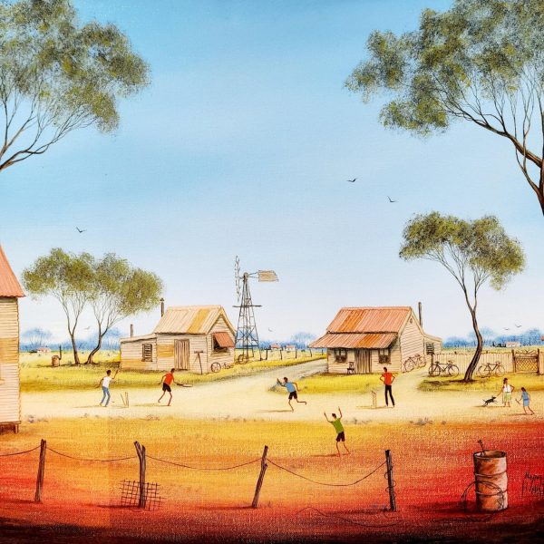 A son of Pro Hart, Kym was blessed with many opportunities to study under different teaches & artists, developing his individual style and techniques. Many of Kym’s outback artworks are narratives. Not only do they depict a particular scene but they draw the viewer in to witness a particular lifestyle. Distinctively naïve, the artist’s style has resulted in his works becoming popular and forming part of a number of private collections within Australia and overseas. Although predominantly working in oils, the range of mediums adopted by Kym include gouache, watercolors, etching, monotypes and block printing