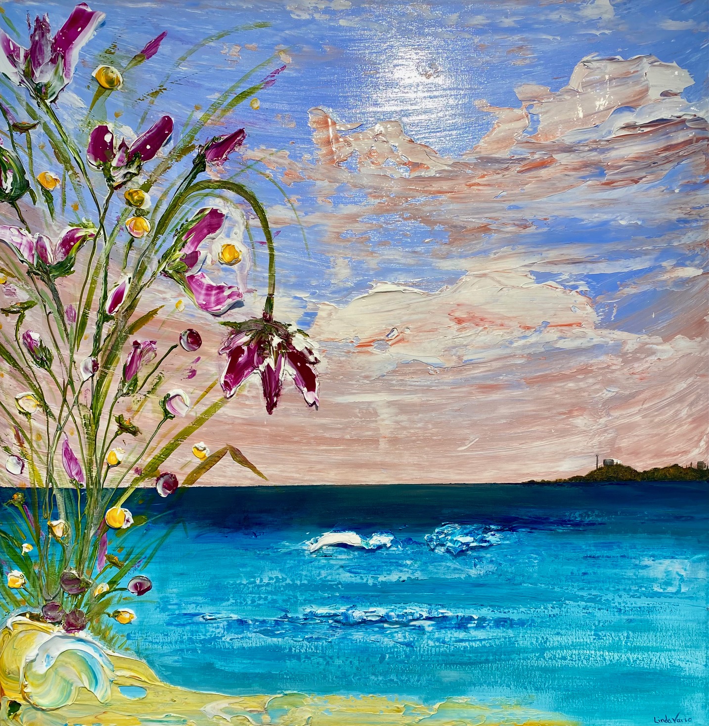 Linda Vario has mastered a rhythmical balance of both harmonious and spontaneous expression, resulting in works of provocative form, light and emotive energy. She is known for creating intricate and visually stimulating works of resonating emotion and extravagant colour. Bright and vivid colours are reflective of her links to the seductive Australian landscape.