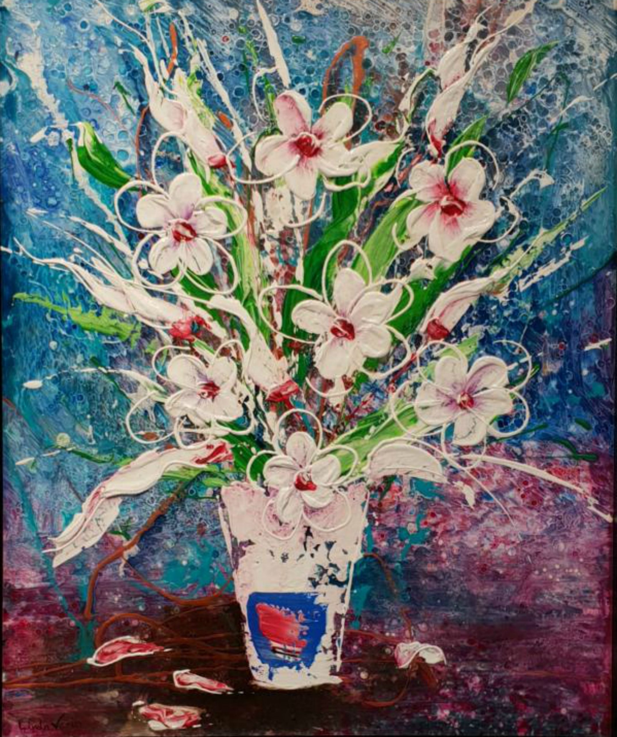 Linda Vario has mastered a rhythmical balance of both harmonious and spontaneous expression, resulting in works of provocative form, light and emotive energy. She is known for creating intricate and visually stimulating works of resonating emotion and extravagant colour. Bright and vivid colours are reflective of her links to the seductive Australian landscape.
