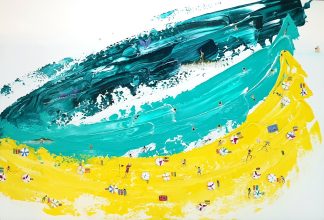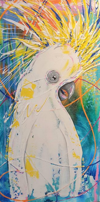 In much of her work, Vario orchestrates a combination of mediums layered to create high-relief tactile finishes with three-dimensional impact. She is constantly stretching her chosen medium (acrylic) to its full potential. In these artworks, chromatism is the artist’s chosen tool for constructing images, where the artist’s bright and vivid colours are reflective of her links to the seductive Australian landscape.