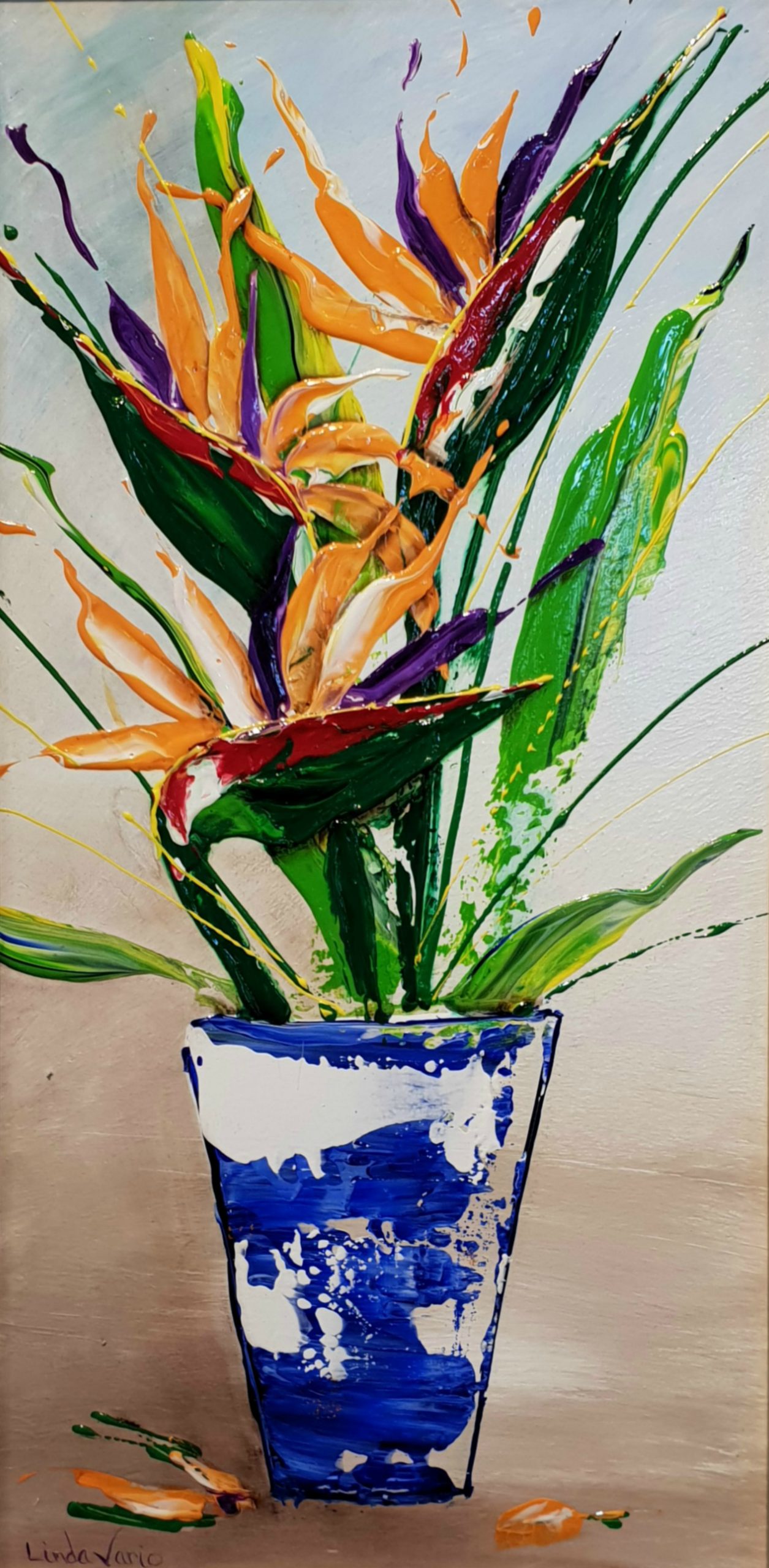 Linda Vario has mastered a rhythmical balance of both harmonious and spontaneous expression, resulting in works of provocative form, light and emotive energy. She is known for creating intricate and visually stimulating works of resonating emotion and extravagant colour. Bright and vivid colours are reflective of her links to the seductive Australian landscape.