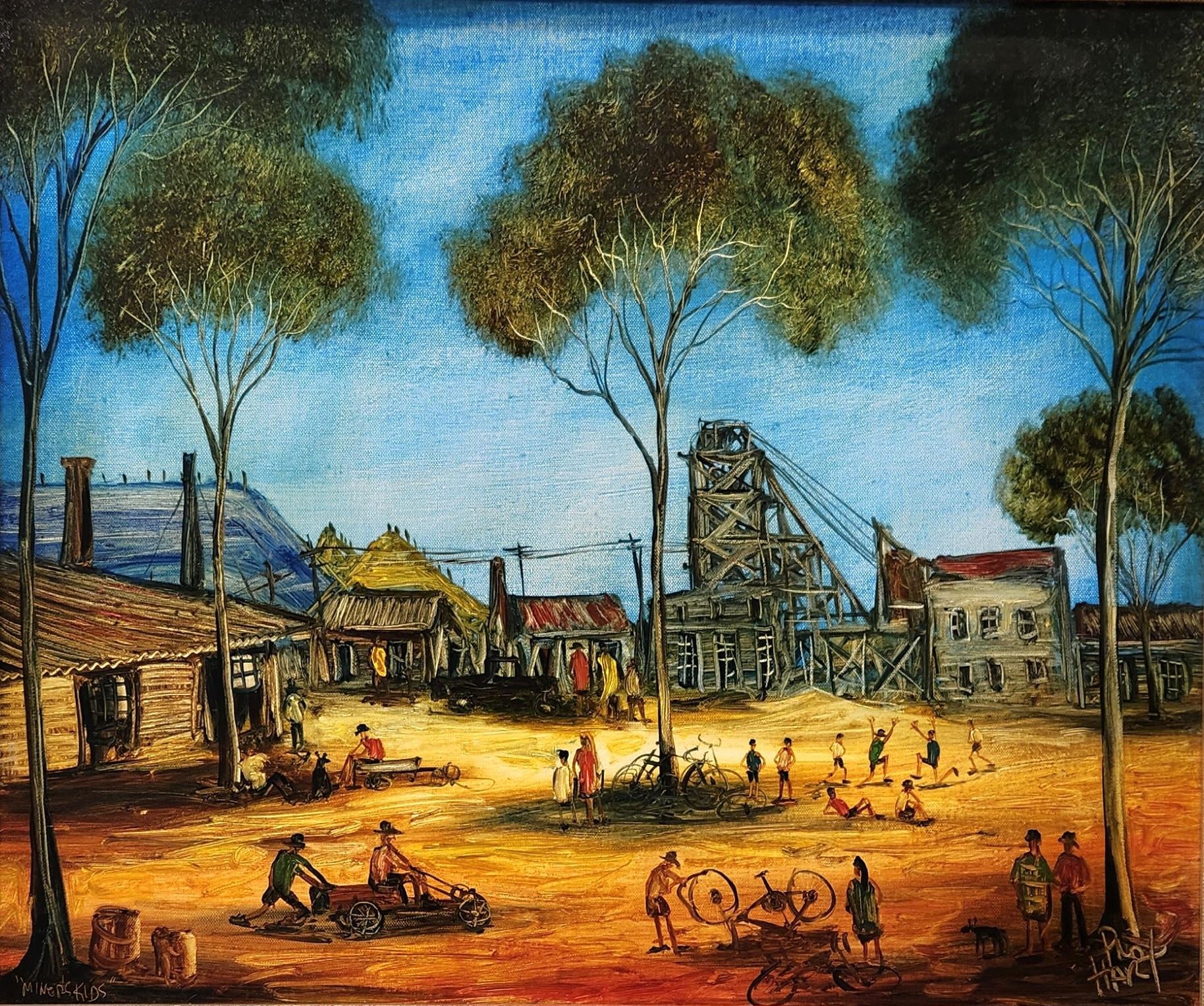 One of Australia’s most recognised and beloved artists, Pro’s paintings have won world acclaim, with his highly individualistic and semi-primitive style depicting scenes typical of the Australian outback. Pro worked in oils and water colours with both brush and pallet knife, using vivid colours true to the vastness of the outback with its harsh yet beautiful landscape and mining towns in the region in which he grew up. For all admirers, collectors and owners of Pro Hart artworks, we have some exceptional and iconic paintings on sale over the summer holiday season.