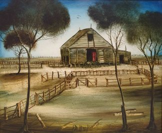 Pro’s early years were spent on the family sheep property “Larloona Station”, near Menindee, NSW. Pro’s first real brush with art was at a young age when correspondence school lessons and school-of-the air was thrust upon his carefree young life. Always able to sketch and paint at the age of seven years Pro started to illustrate his school essays – often in preference to writing them. Purely self-taught with no formal art training, the distinctive Pro Hart Australian style began to emerge.