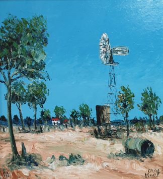 Working in oils and water colours with both brush and pallet knife, and using vivid colours true to the harshness of the outback, his paintings have won world acclaim.