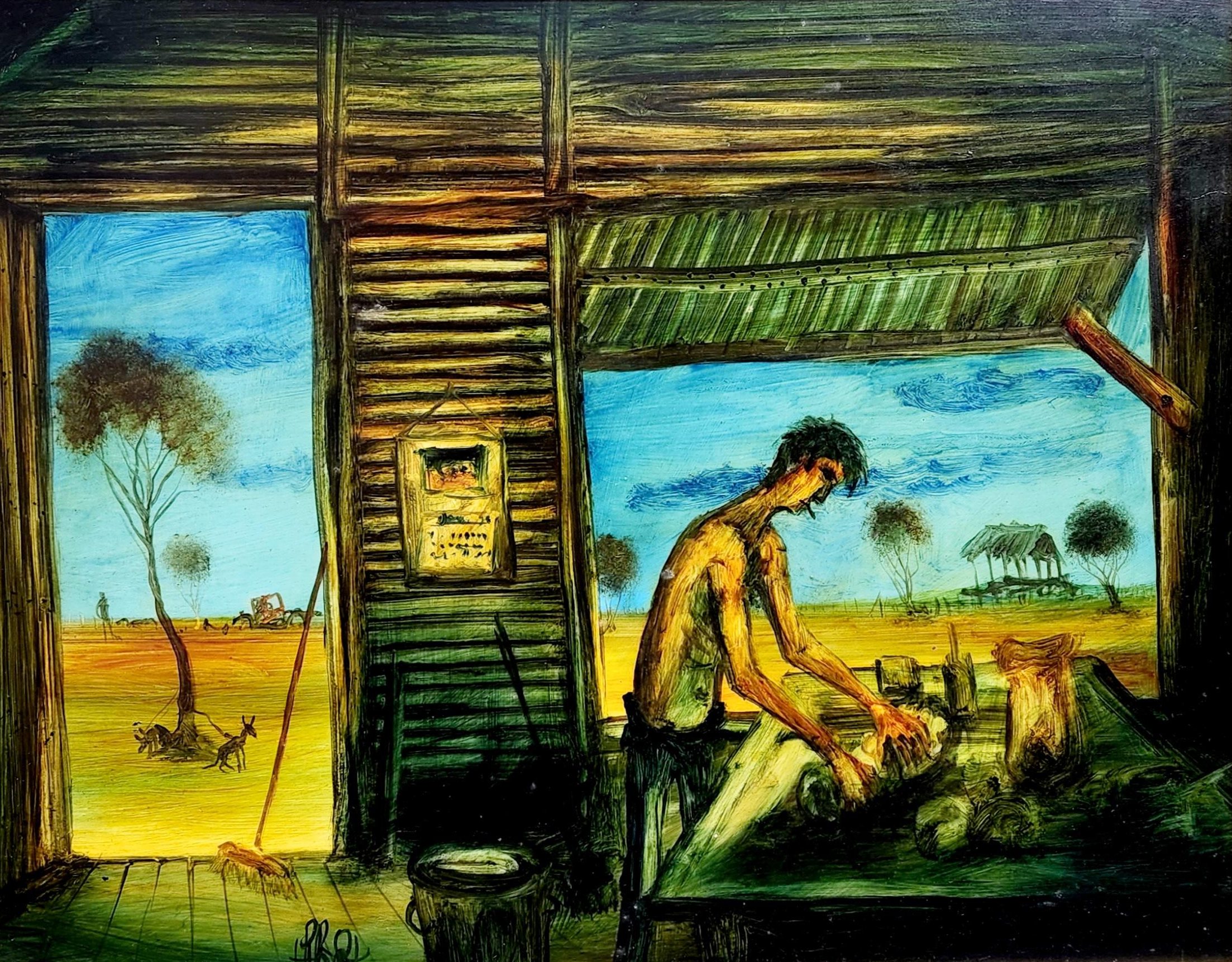 One of Australia’s most recognised and beloved artists, Pro’s paintings have won world acclaim, with his highly individualistic and semi-primitive style depicting scenes typical of the Australian outback. Pro worked in oils and water colours with both brush and pallet knife, using vivid colours true to the vastness of the outback with its harsh yet beautiful landscape and mining towns in the region in which he grew up. For all admirers, collectors and owners of Pro Hart artworks, we have some exceptional and iconic paintings on sale over the summer holiday season.
