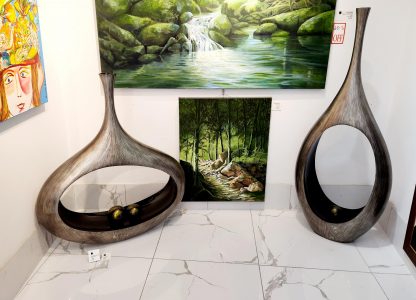 | Resin-infused Polished Wood Fibres & Glass Particles | 32x34cm